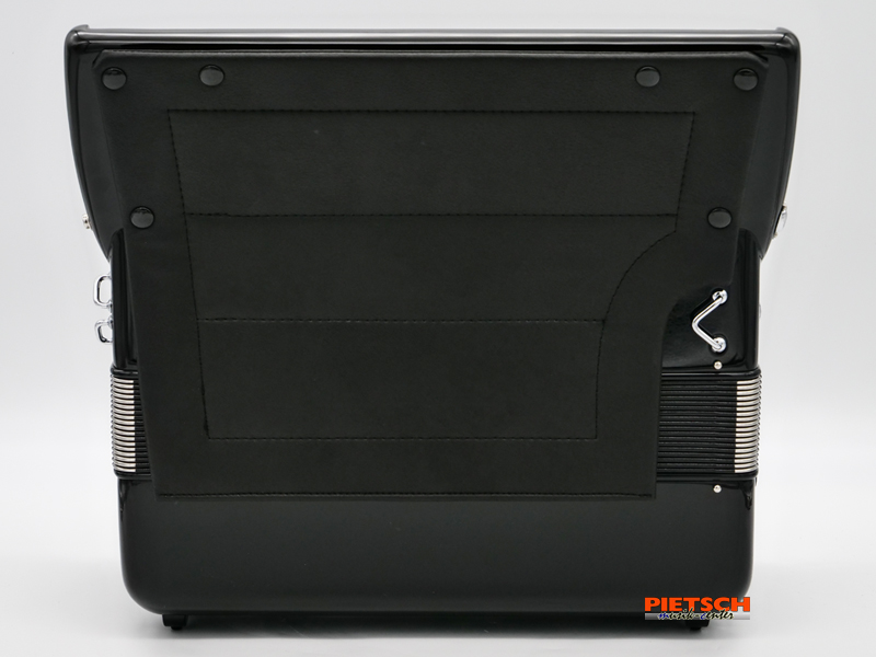 Piano-Akkordeon, Farbe: Schwarz, Super Dural-Stimmplatten, 37 holzgelagerte Tasten, Chöre im Diskant: 4, 11 Diskantregister, 96 Bässe, Chöre im Bass: 5, 3 Bassregister, Maße in cm: ca. 42,5 x 19 x 41, Gewicht: 9,7 kg, Inkl. Gigbag und Tragriemen