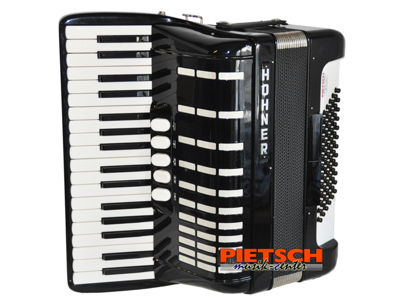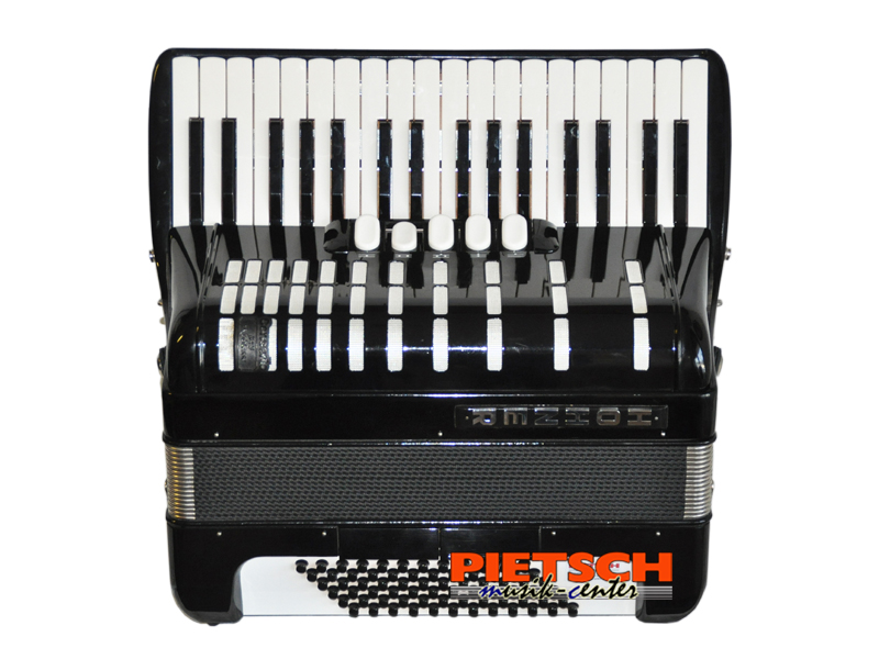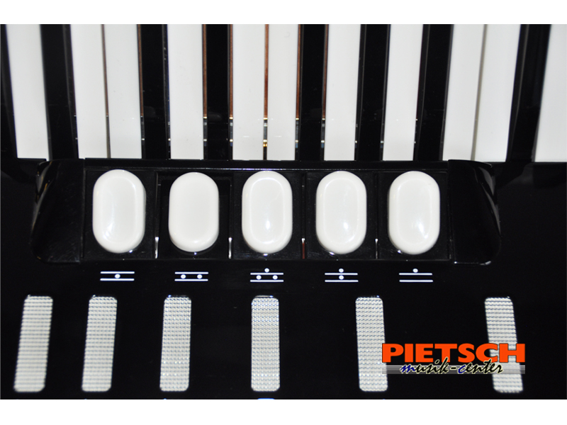 Piano Akkordeon, Farbe: Schwarz, Gebraucht, Top Zustand, 34 Tasten, Chöre im Diskant: 3, Diskantregister: 5, 72 Bässe, Chöre im Bass: 4, 2 Bassregister, Maße in cm: ca. 39,4 x 18,5, Gewicht: ca. 7,4 kg, Inkl. Koffer und Tragriemen