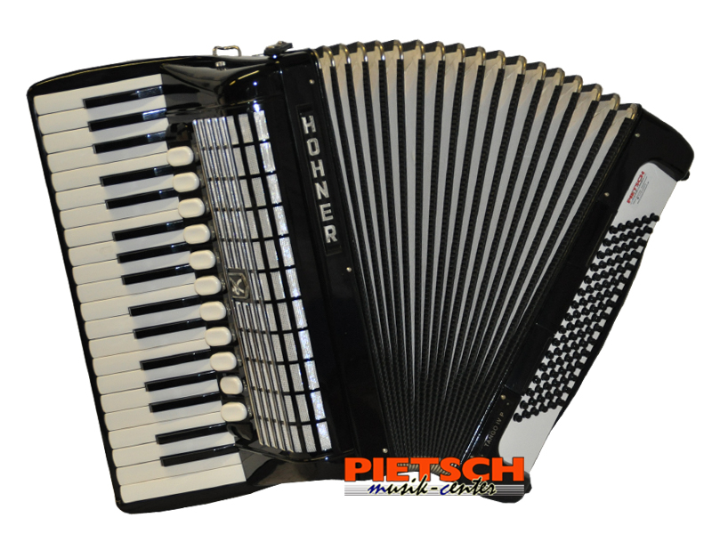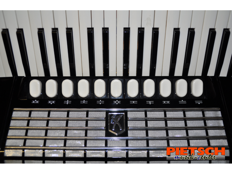 Piano Akkordeon, Farbe: Schwarz, Gebraucht, 37 Tasten, Chöre im Diskant: 4, Diskantregister: 11, 96 Bässe, Chöre im Bass: 4, Bassregister: 3, Maße in cm: 18 x 44, Gewicht ca: 9,5 kg, Inkl. Koffer und Tragriemen