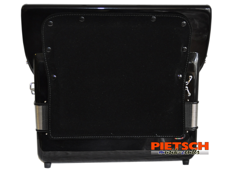 Piano Akkordeon, Gebraucht, Top Zustand, Farbe: Schwarz, mit Cassotto, HA2-Stimmplatten, 37 holzgelagerte Tasten, Chöre im Diskant: 4, 11 Diskantregister, 120 Bässe, Chöre im Bass: 5, 5 Bassregister, Doppeloktav-Stimmung ( 16″+8″+8″+4″)