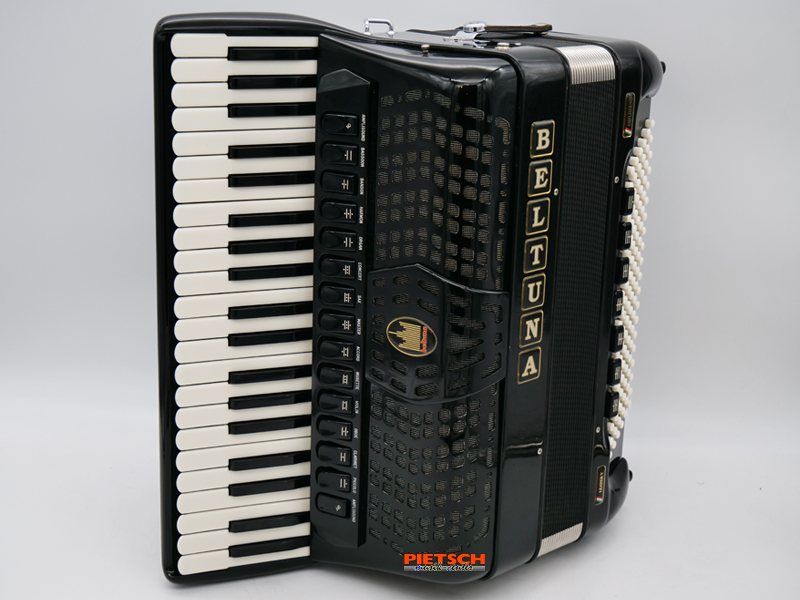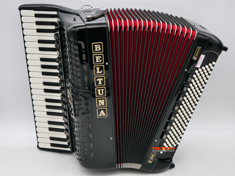 Das Akkordeon befindet sich in einem Top Zustand. Tonlich, mechanisch und optisch wurde das Akkordeon complett überarbeitet und überprüft. Die Diskant- und Bassseite wurden complett neu gestimmt. Die Geläufigkeit und Bespielbarkeit der Tastatur und der Bass-Mechanik ist sehr gut. Ebenso die Dichtheit und der geringe Luftverbrauch während des Spielens. Amplisound ist für alle Chöre im Cassotto zuschaltbar. Ein revolutionäres und zugleich einfach arbeitendes System, das einen zusätzlichen und damit vergrößerbren Cassottoraum beinhaltet. Im Gegensatz zu klangbeeinflussenden Jalousien etc. entstehen keine Lautstärkeverluste (Amplification = Verstärkung) und keine Unterdrückung der Obertöne. Völlig neue Akkordeonklänge (bis zu 24 Registervariationen im Diskant) werden dadurch ermöglicht