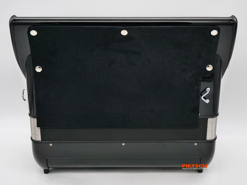 Piano Akkordeon, Gebraucht, Top Zustand, Farbe: Schwarz, Mit Doppelcassotto (Amplisound), Amplisound über Diskantregister schaltbar, 41 holzgelagerte Tasten, Chöre im Diskant: 5, 13 Diskantregister, 120 Bässe, Chöre im Bass: 5, 7 Bassregister