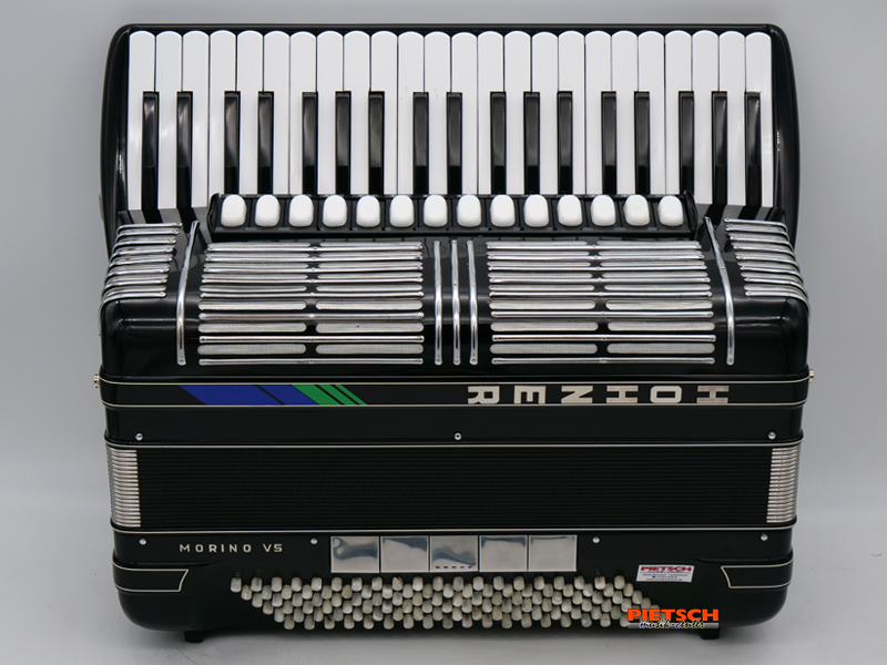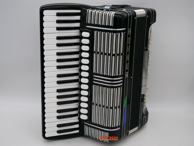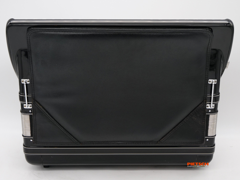 Piano Akkordeon, Gebraucht, Top Zustand, Farbe: Schwarz, Mit Cassotto, HA2-Stimmplatten, 41 holzgelagerte Tasten, Chöre im Diskant: 5, 14 Diskantregister, Registrierung (16″+8″+8″+8″+4″), 120 Bässe, Chöre im Bass: 5 , 5 Bassregister