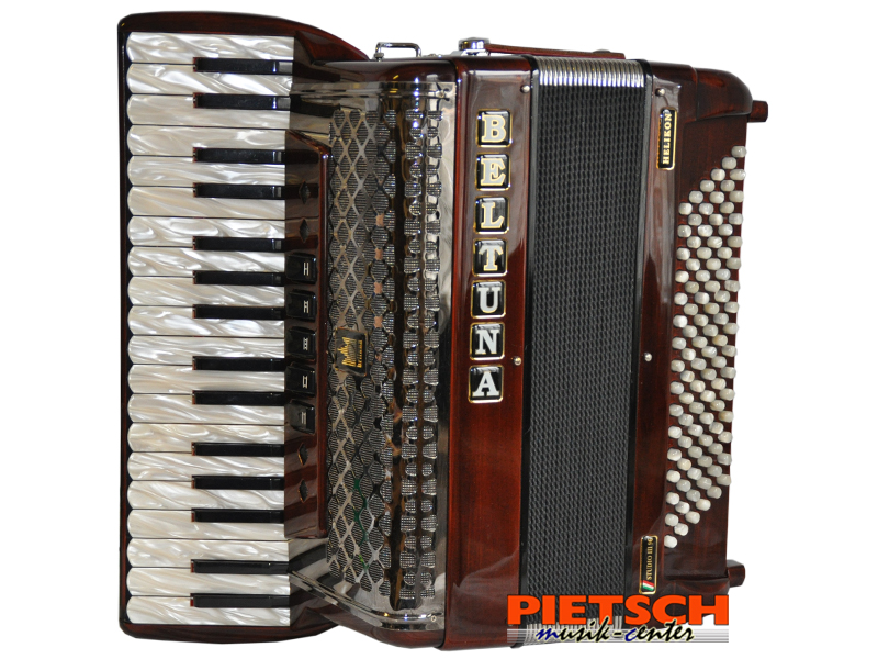 Beltuna Harmonikordeon, Gebraucht, Top Zustand, Farbe: Holzlack, 34 holzgelagerte Tasten, Chöre im Diskant: 3, 5 Diskantregister, 96 Helikonbässe, Chöre im Bass: 4, 3-chöriges Tremolo, großer Dynamikbereich, hervorragende Bassmechanik
