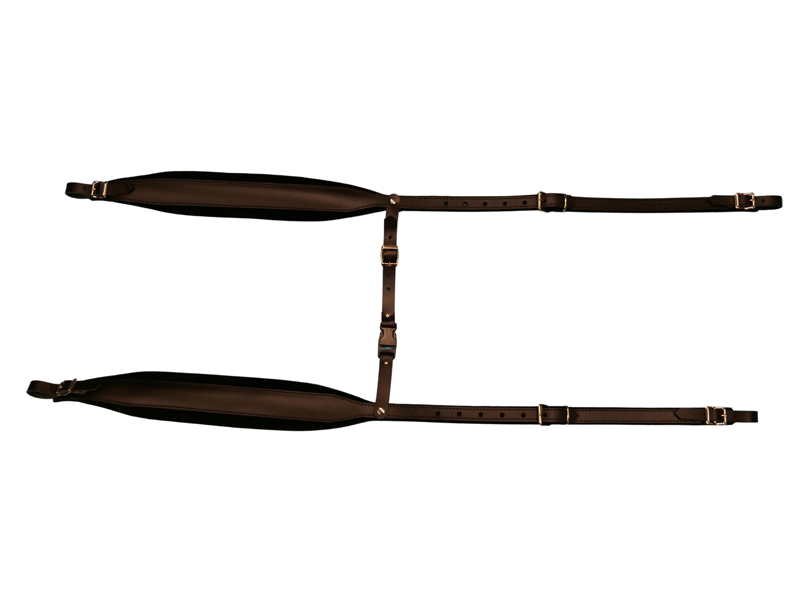 Fuselli Tragriemen, mit festem Querriemen, Farbe: Schwarz, Leder / Samt, extrem weiche Polsterung, Individuell einstellbar, linker Tragriemen (von 80cm – 95cm) rechter Tragriemen (von 85cm – 100cm), Breite: 7cm