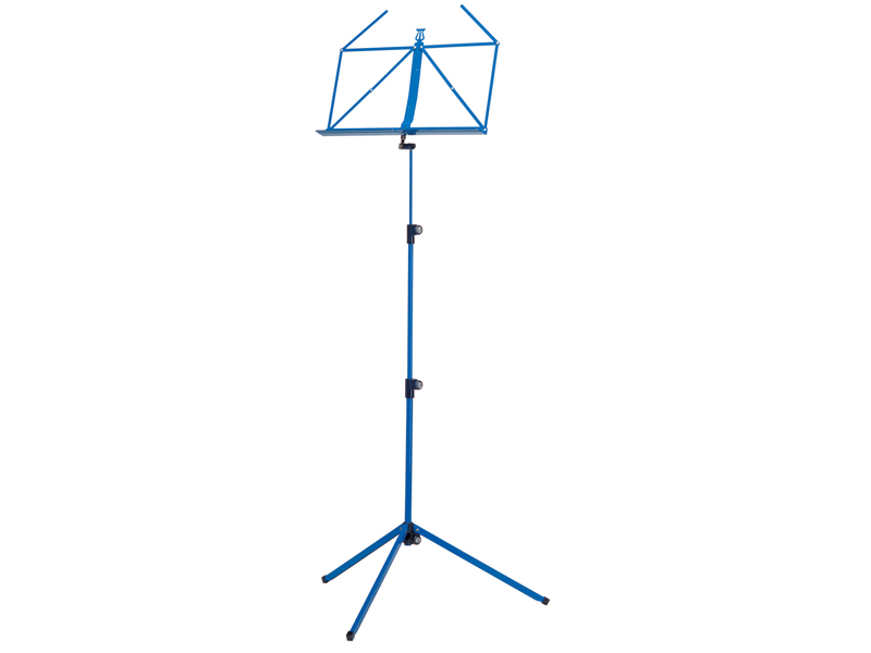 K+M Notenpult, Farbe: Blau, Einrastende Profilfüße, Traditionell zusammenlegbar, 2-fach ausziehbar, Material: Stahl, Höhe verstellbar von 625 mm bis 1240 mm, Notenauflage in mm: 435 x 215, Größe zusammengelegt: 460 mm, Gewicht: 1,3 kg