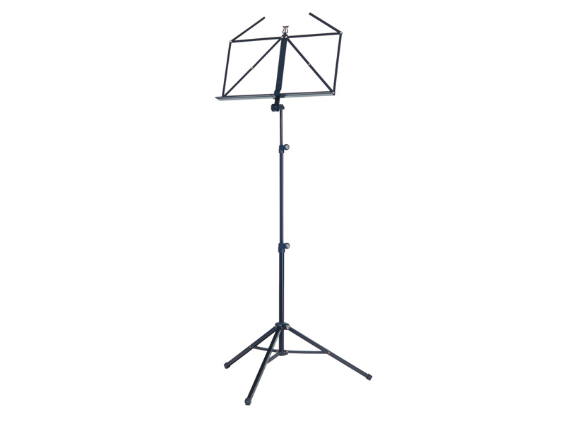 K+M Notenpult, Farbe: Schwarz, Stahl, Passt fast in alle gängigen Trompetenkoffer, Profilfüße mit Stützstreben, Traditionell zusammenlegbar, 2-fach ausziehbar, Größe zusammengelegt: 490 mm, Höhe von 585 mm bis 1220 mm, Gewicht: 1,54 kg